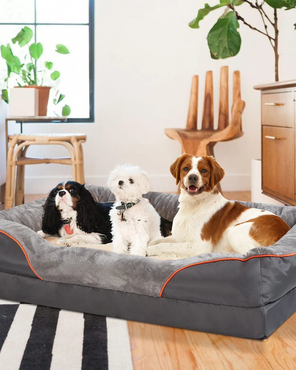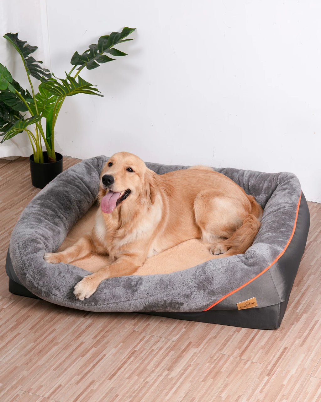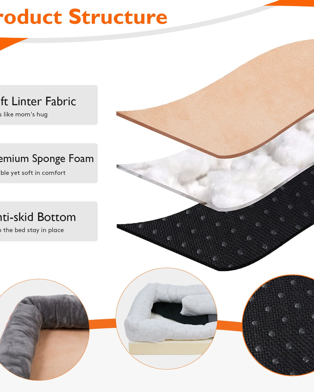 • L XL 2XL 3XL Dog Bed Super Soft Orthopedic Foam Pet Bed Sleeping Mat with Cotton-padded Bolster and Removable Cover